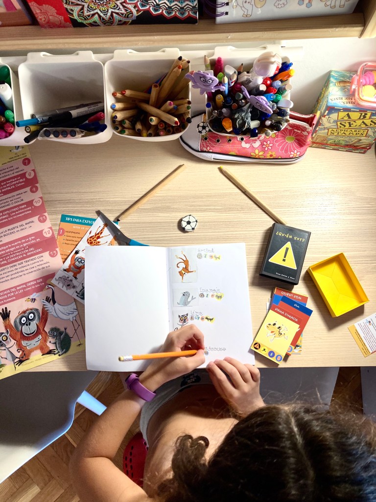 En casa nos ha conquistado por completo. Tanto que ya nos los hemos leído entero, completando las lecturas con una búsqueda en Internet de fotos reales de cada animal. Siendo que muchos ni los conocíamos, ha sido realmente sorprendente ver imágenes de ellos y poder admirar su belleza natural. Y mi hija, haciendo uso del cuaderno de campo, de las pegatinas y del juego de cartas que incluía el pack que recibimos, ha hecho su propia lista de los 22 animales valiéndose de los mismos iconos que propone el libro y que salen en las tarjetas.
