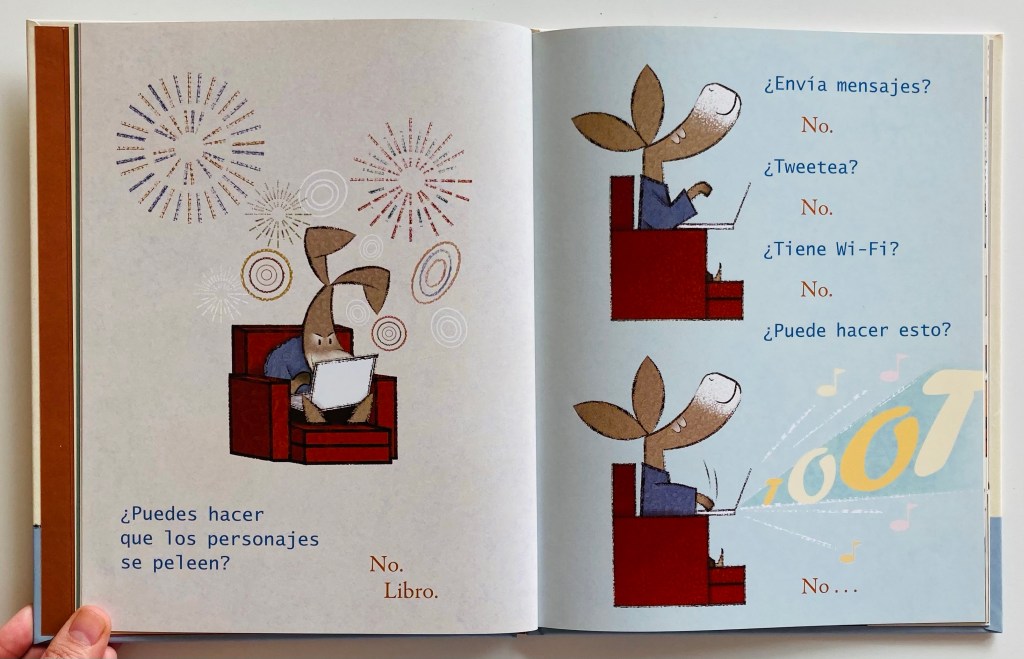 “¿Qué tienes ahí? Es un libro. ¿Cómo ajustas la página? No funciona así. Paso las páginas. Es un libro. ¿Sirve como blog? No. Es un libro.”