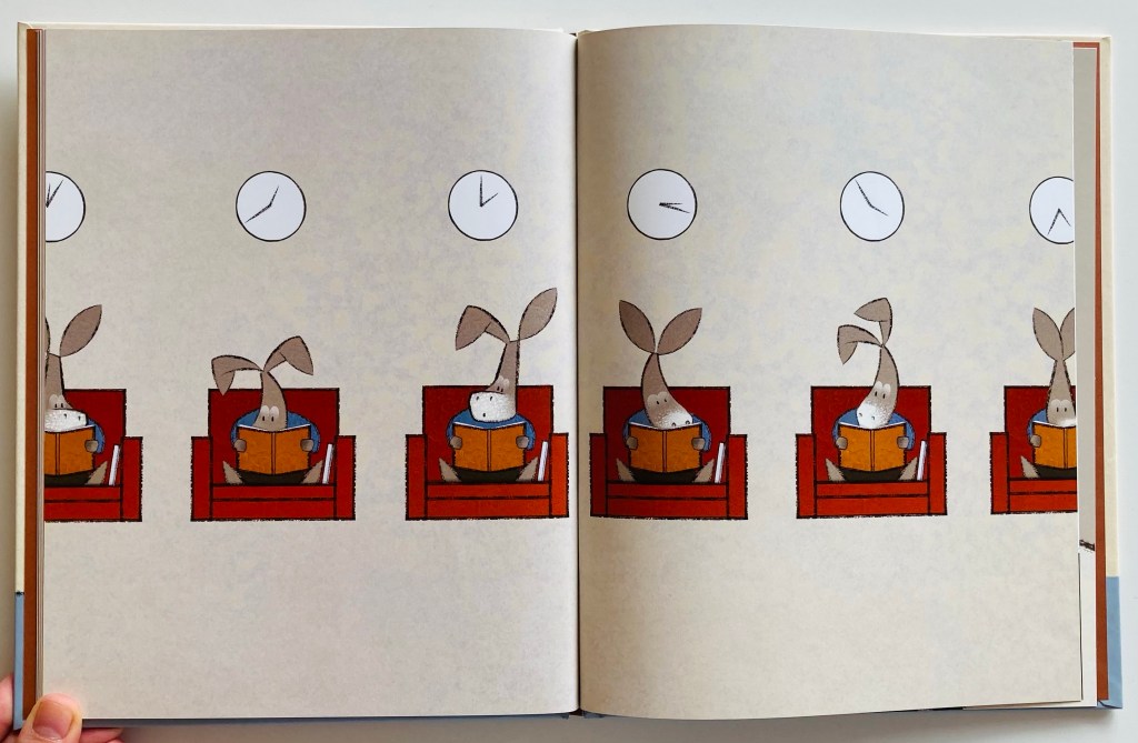 En este precioso álbum encontraremos un asno, un mono y un ratón. Además, también aparecen un ordenador y, por supuesto, un libro. Un libro como gran protagonista. Un libro que viene a reivindicarse a sí mismo y a gritarnos que está en nuestras manos hacer un uso responsable de las pantallas para que no pasen por delante del papel. Que nos enseña entre líneas que un buen rato de lectura y de aprendizajes a través de las páginas de un buen libro nunca debe ser sustituido por ninguna pantalla.