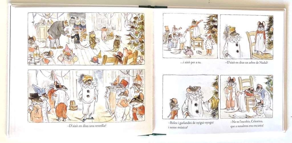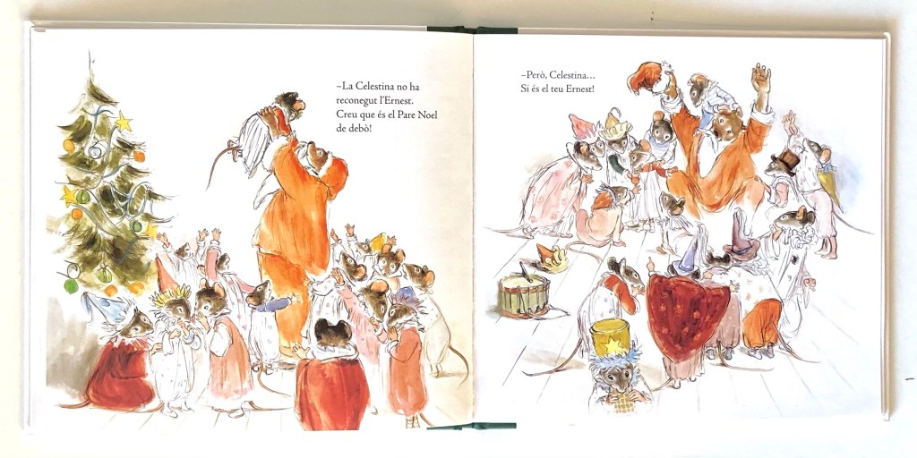 La pequeña Celestina quiere celebrar la Navidad organizando una fiesta para todos sus amigos, pero Ernesto le recuerda que no tienen dinero… A pesar de las reticencias de Ernesto, Celestina está convencida de poder organizar una bonita fiesta navideña donde no faltará árbol, música, comida, regalos, adornos… Ernesto, que debe cumplir con su promesa, finalmente accede a ayudar a Celestina con los preparativos. Con lo poco que tienen, pero con todo el amor del mundo, preparan todos los detalles para la fiesta y para los invitados, consiguiendo lo que les falta de la forma más humilde que se pueda imaginar. Ernesto, hasta podrá confeccionar un bonito vestido para Celestina y un resultón traje de Papá Noel para él, con el que sorprenderá a todos los invitados (y a Celestina 😉 ). Por fin llega el momento en el que abren las puertas de su humilde casa para recibir a sus amigos que, sin lugar a dudas, disfrutarán de lo lindo de esta fantástica fiesta navideña que (aunque algún invitado arrogante no lo quiera reconocer) tiene todo lo necesario para ser una fiesta PERFECTA. Y, además, con un final perfecto: Ernesto, a la luz de las mágicas velas, cuenta un cuento a los pequeños, y después, con la magia de su violín, consigue hipnotizarlos a todos 🙂