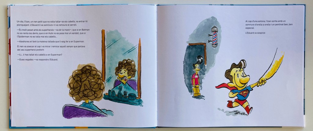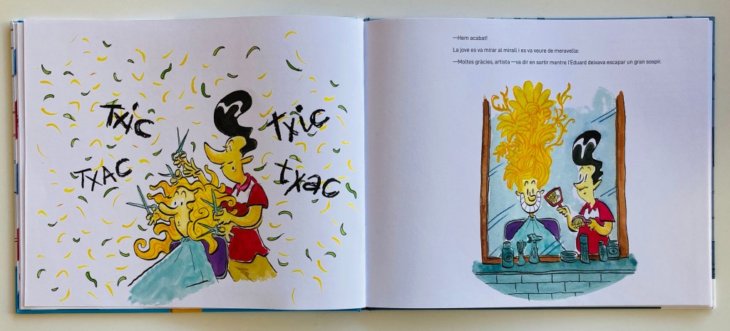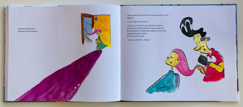 Con un texto dinámico, fresco, con mucho ritmo y humor, y unas ilustraciones únicas que se ajustan a la perfección y que nos han arrancado ya varias sonrisas, estamos disfrutando mucho estos días con “Peluquería Alegría” que, entre pelos, pelos y más pelos (así recuerdo yo muchas tardes de cuando yo era pequeña) nos ofrece dosis de empatía, de generosidad, de creatividad, de diversidad y de autoestima de mucho valor, y todo ello, además, conducido con la exacta y justa diversión.