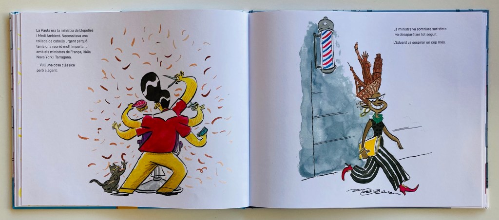 Y es que las manos de Eduardo son capaces de afrontar cualquier reto y de crear auténticas maravillas (algo peludas, eso sí, jeje): desde un jardín repleto de flores para la jardinera, hasta la recreación de monumentos emblemáticos (me encanta el guiño a Tarragona 🙂 ) para la ministra, pasando por peinados de superhéroe o por las coletas y los flequillos “de siempre” para los más pequeños y exigentes clientes.