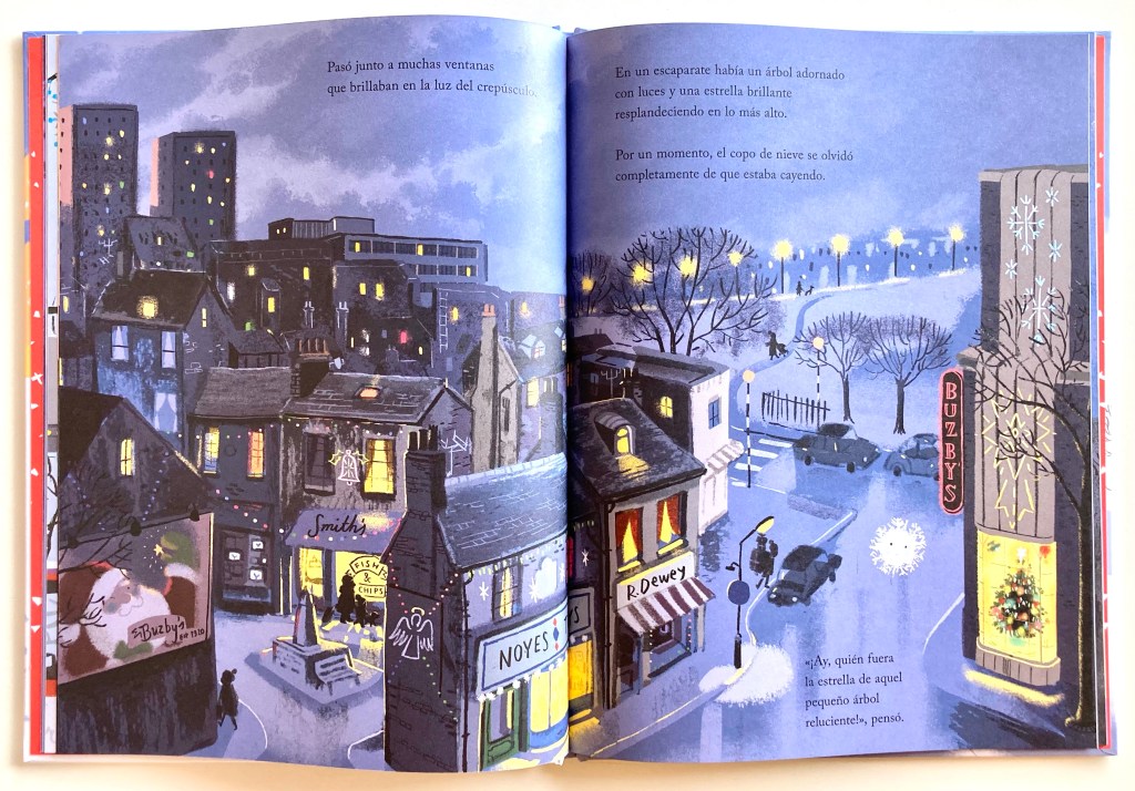 Un cuento ambientado en Navidad pero que, como bien adelanta el persuasivo texto de la contraportada, puede ser perfectamente atemporal si te acoges a los valores que transmite. Una bellísima historia con un final lleno de luz que te deja con una agradable sensación de que tienes entre manos un gran álbum.