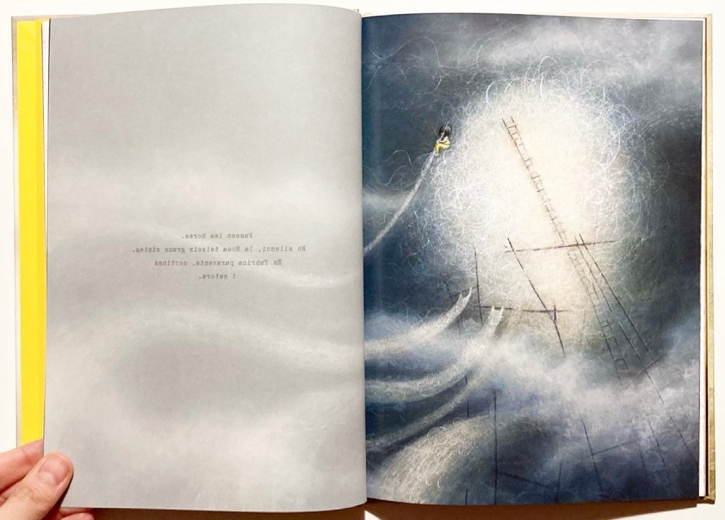 Este libro nos trae la tristeza entre sus páginas, tristeza vestida de neblina capaz de invadir por completo el mundo de Rosa, una niña marcada por un duelo no elaborado que la ha dejado anclada a un mundo gris, de donde solo obtiene niebla con la que hila y teje opacidades para cubrir su malestar. Sus tejidos, además, también servirán para cubrir los malestares del resto de habitantes de ese sombrío país, invadiendo así todos los rincones.