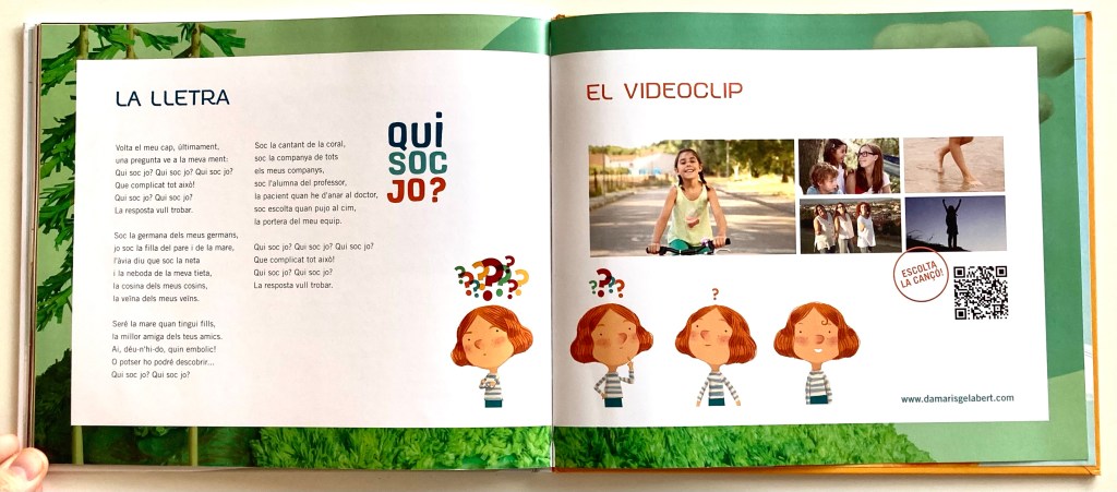 Dàmaris Gelabert va publicar aquesta cançó l’any 2006, formant part de l’àlbum “Cançons Per Aprendre: 3-7 Anys Vol ll”, però no va ser fins l’any 2014 que en va treure el videoclip, al qual la meva filla, amb uns 4 anys, s’hi va, literalment, enganxar. Havíem escoltat aquesta cançó en bucle durant moltes estones i l’havíem cantat durant moltes estones més, així que ja us podeu imaginar l’alegria que va suposar saber que aquesta bonica editorial ens faria arribar un exemplar de “Qui soc jo?” a casa 🙂 Moltes gràcies.