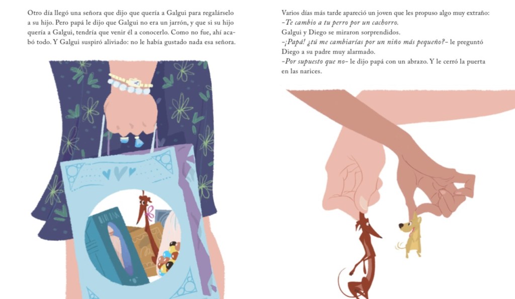Y, por supuesto, es autora del álbum que hoy nos ocupa, “Galgui”, que aunque no es una novedad, desde hace unas semanas se ha iniciado una nueva campaña de verkami para financiar su tercera impresión. Así que, si os animáis, por unos días todavía estáis a tiempo de seguir sumando para que más ejemplares de este hermoso libro lleguen a todavía más hogares. Os dejo aquí el enlace: https://www.verkami.com/projects/29393-tercera-reimpresion-de-galgui