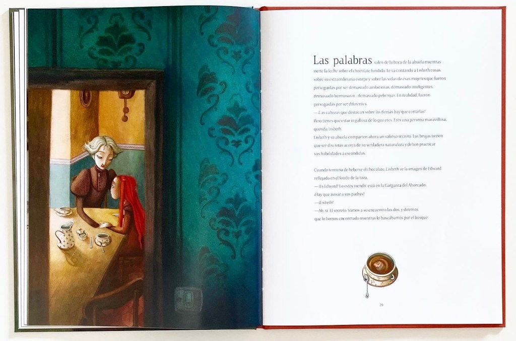 Las primeras páginas de “La pequeña bruja”, gracias al sorprendente relato de Sebastien Pérez y a las sensacionales y hechizantes ilustraciones de Benjamin Lacombe, emanan el reflejo de como la sociedad en ocasiones se comporta con aquellos que no encajan en el mismo molde que los demás. El aislamiento social y la exclusión son la realidad diaria de Lisbeth, una niña muy especial incomprendida por los suyos.