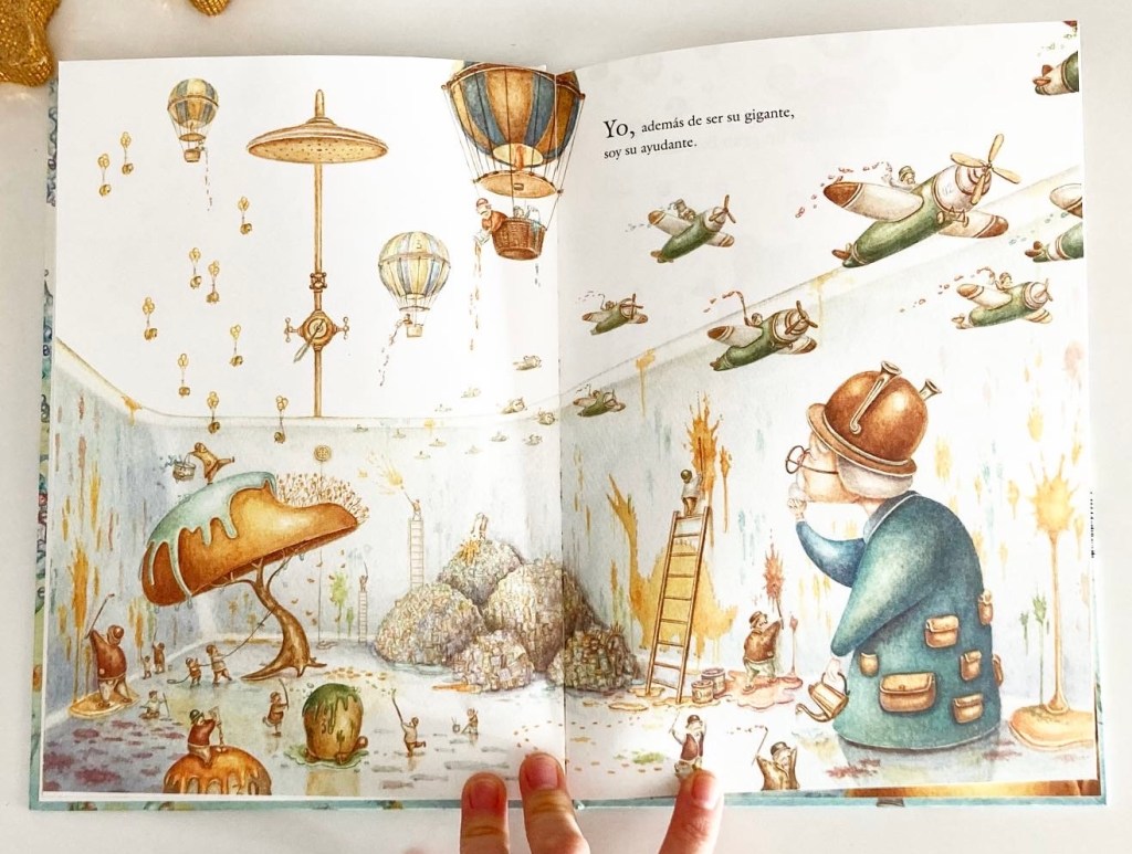 Y a través del juego simbólico la imaginación alcanza niveles estratosféricos, y esto es de lo que nos vamos a poder empapar en esta fabulosa historia, contada por su texto pero más aún por sus prodigiosas (sí, prodigiosas) ilustraciones.