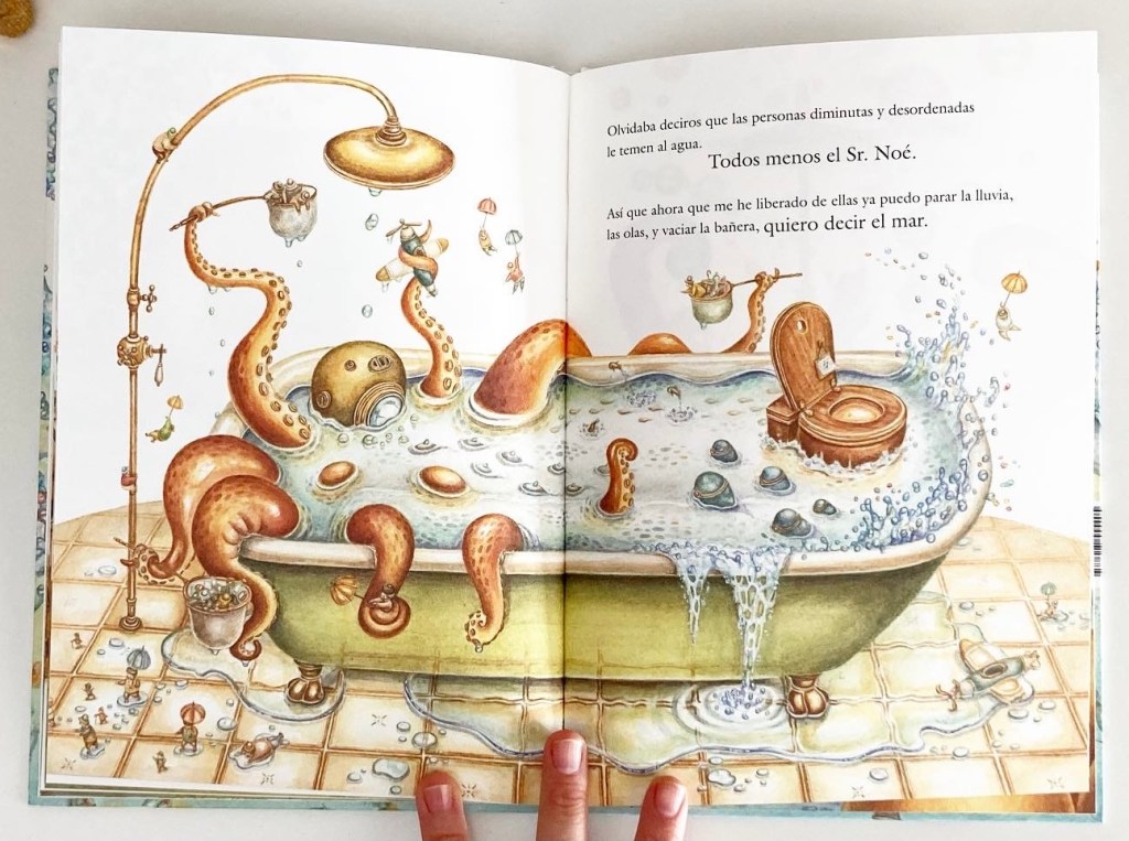 La bañera es el lugar de la casa donde las cosas más sorprendentes suelen suceder. La motivación que produce este entorno acuático tan hogareño activa y agudiza la imaginación y la creatividad de los niños, que se expanden hasta límites insospechados. Este álbum lo deja bien claro, aunque más allá de hablar de imaginación, ¿será que hay un mensaje subliminal sobre la importancia del orden y la limpieza? 😉