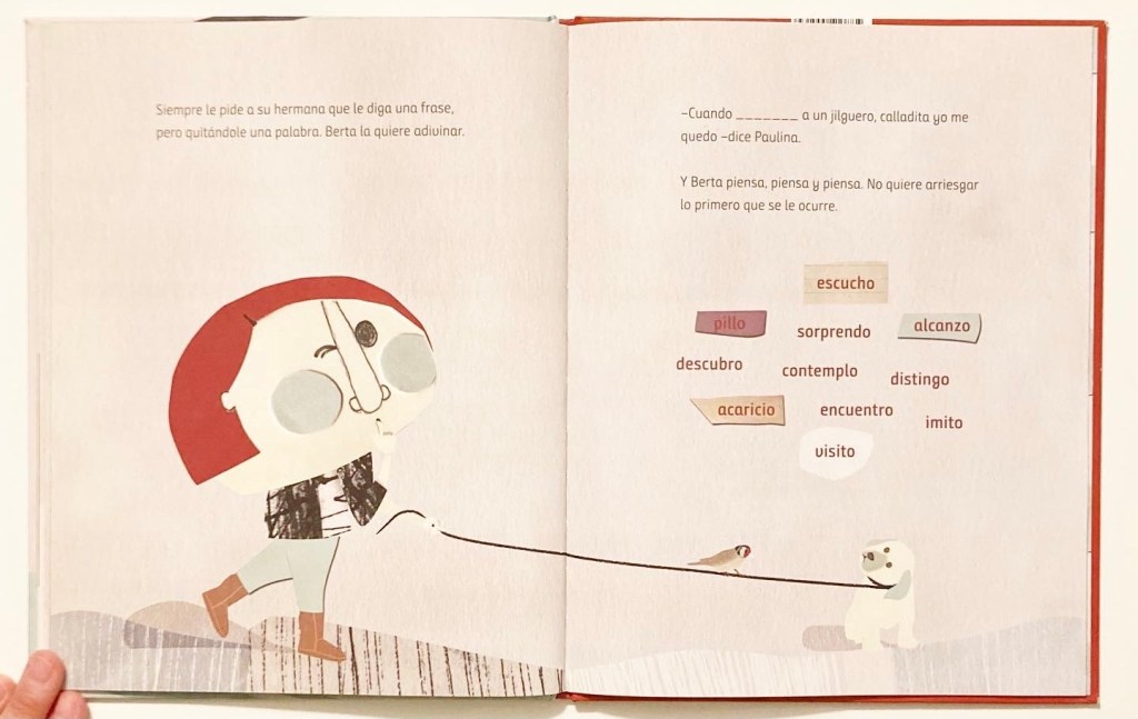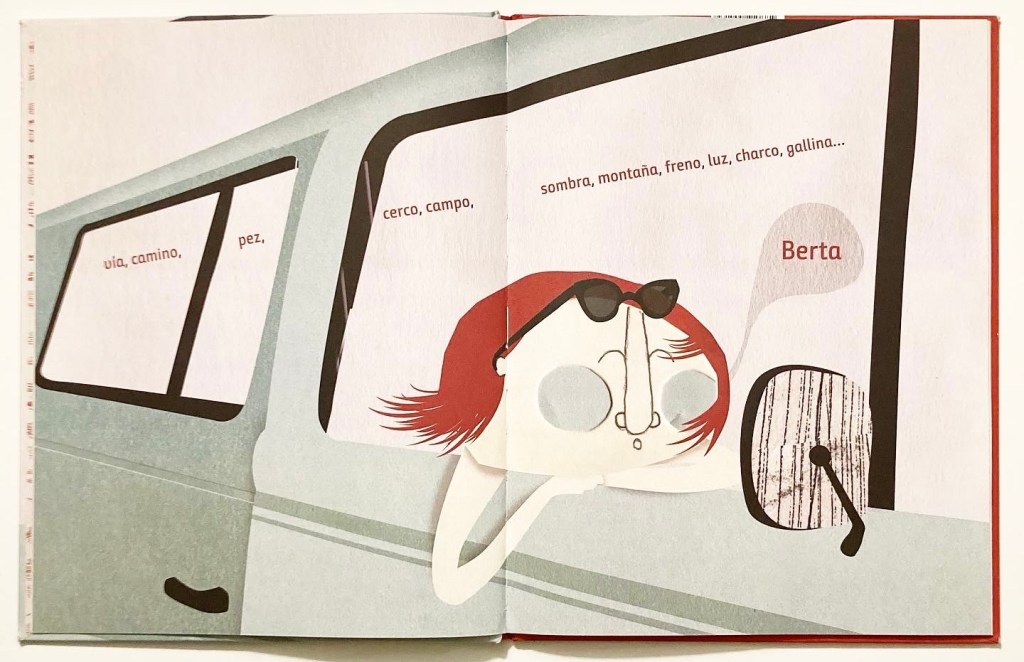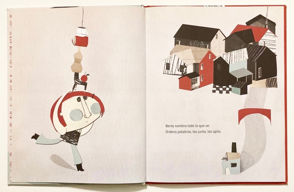 “Berta nombra todo lo que ve. Ordena palabras, las junta, las apila. Vía, camino, pez, cerco, campo, sombra, montaña, freno, luz, charco, gallina… De día acomoda algunas palabras en columnas y otras en hileras. Y, ahí donde se cruzan -como los caminos, piensa-, inventa poesías y canciones.”
