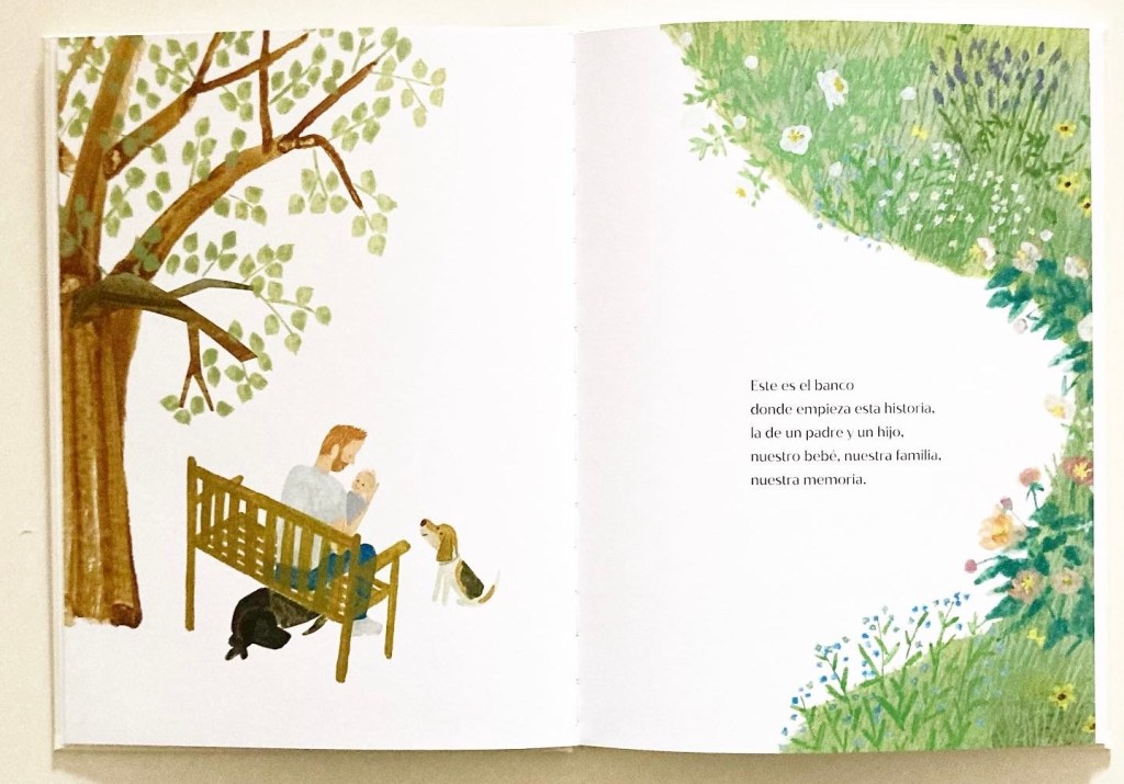 «Este es el banco donde empieza esta historia. la de un padre y un hijo, nuestro bebé, nuestra familia, nuestra memoria.»