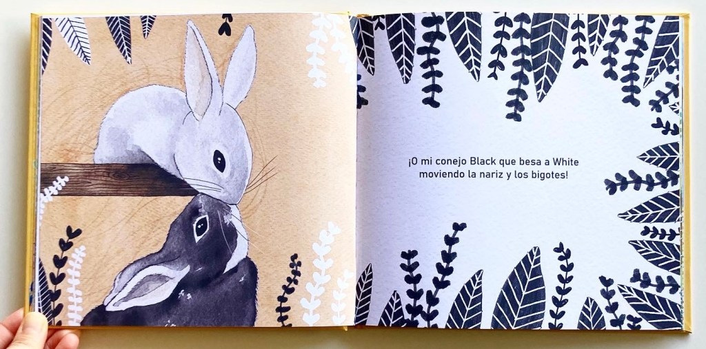 Y esa esencia de la que os hablo aflora junto a los lindos brotes que, igual que el amor, se cuelan por todos los rincones. Las ilustraciones (bellísimas acuarelas) que acompañan las sencillas frases son las auténticas protagonistas y te llevan de paseo por la ternura y la bondad que impregnan incesantemente toda la obra. ¡Atención a Black & White! (Muero de AMOR)