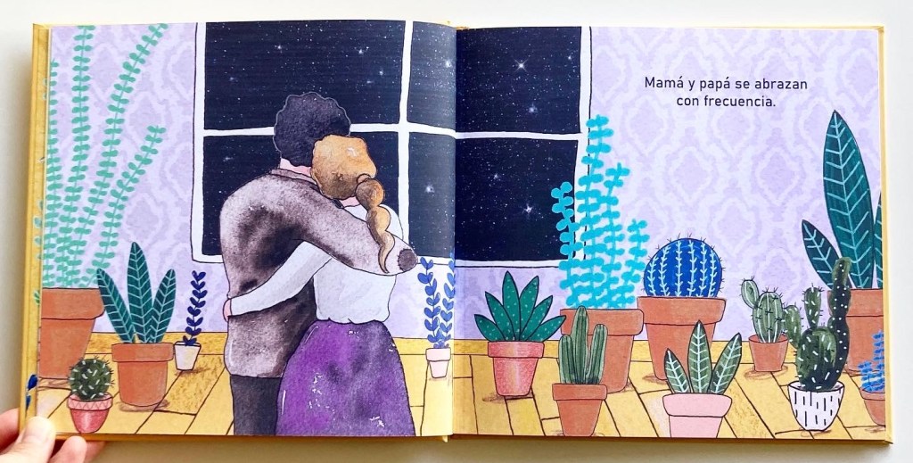 “El abuelo y la abuela se quieren desde hace mucho tiempo. Mamá y papá se abrazan con frecuencia. Y la tía Carmen siempre viene de visita con Rosa. Juntas se ríen, viven felices.”