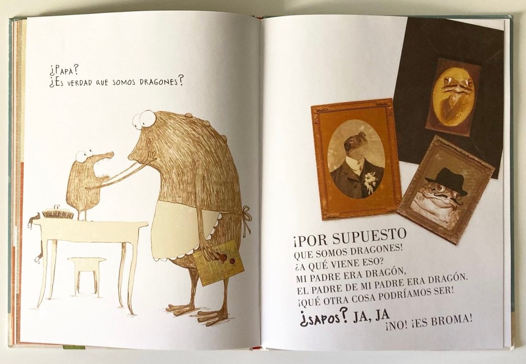 Empezando por el texto, que refleja en un 100% de su contenido el diálogo entre un padre sapo y su hijo, y terminando por las fantabulosas ilustraciones, que nos muestran, de forma muy expresiva, únicamente lo indispensable de cada escena, haremos un recorrido divertidísimo por algo que, en mayor o menor medida, seguro que todos los adultos aquí presentes identificamos.