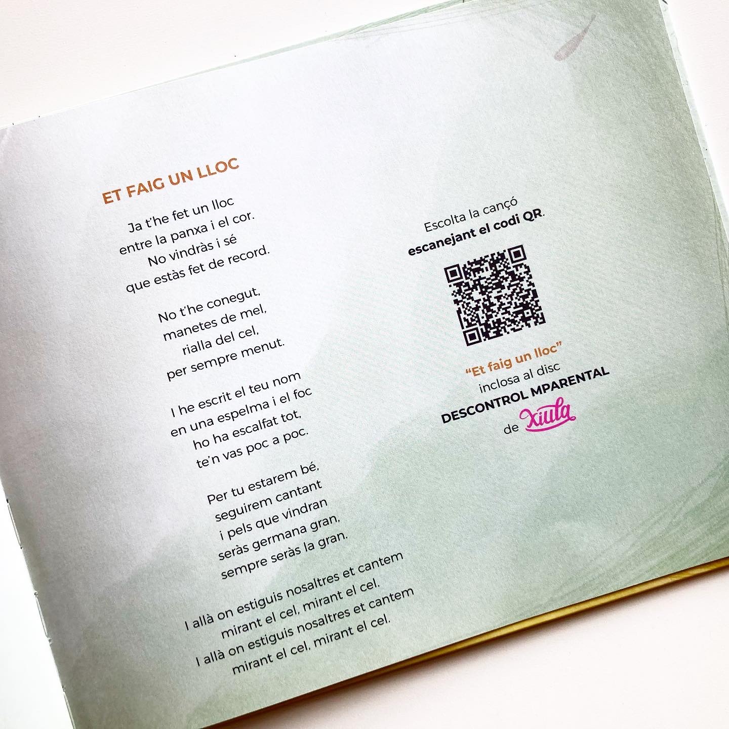 Per tot això, rebre aquest llibre va fer-me esborronar. De la mateixa manera que ho ha fet infinites vegades la cançó “Et faig un lloc” de Xiula, que podeu escoltar i cantar gràcies al QR que es troba en l’última pàgina. Feu-ho!
