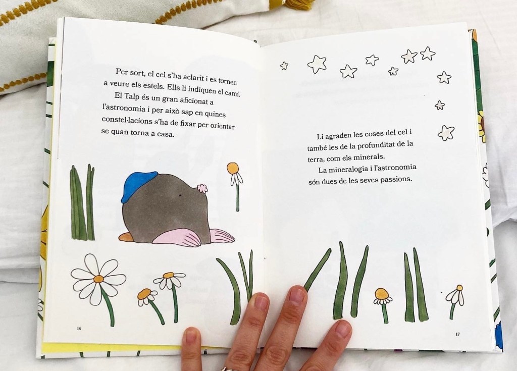 “Del cielo, en mitad de la noche, caen tres luces. ¿Qué son? No parecen luciérnagas. Tampoco orugas. Topo y sus amigas las viejas lombrices están desconcertados. ¿Qué van a hacer con las recién llegadas?”