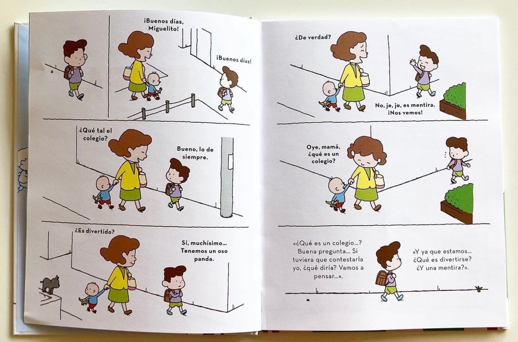 “… ¿Qué es un colegio…? Buena pregunta… Si tuviera que contestarla yo, ¿qué diría? Vamos a pensar… Ya estamos… ¿Qué es divertirse? ¿Y una mentira?”